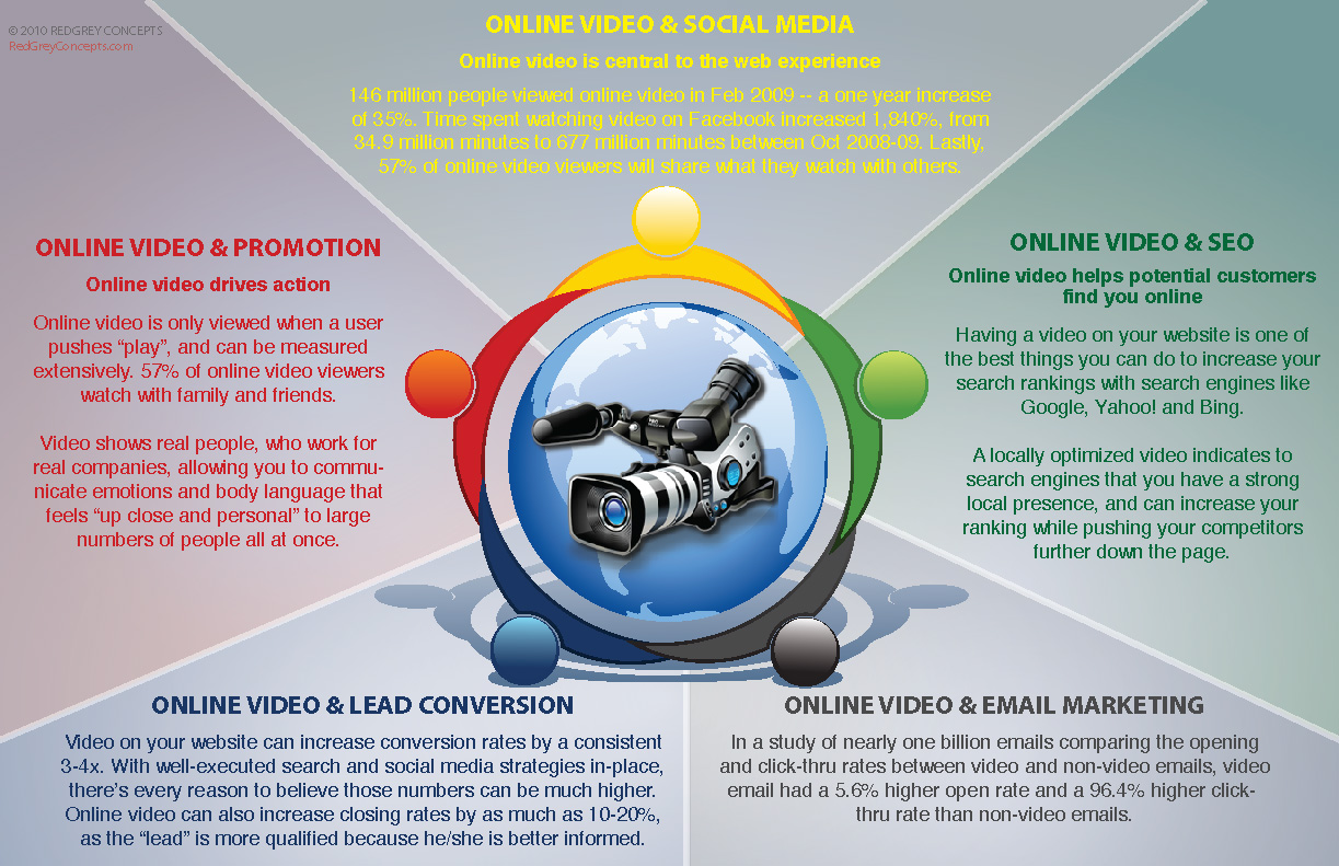 Social Media: YouTube is now the 2nd biggest search engine on earth, after Google. The amount of people who watch video on Facebook increased 1,827% in Oct-Dec of 2009. Most importantly, 60% of everyone who watches a video and likes it will share it with someone else.